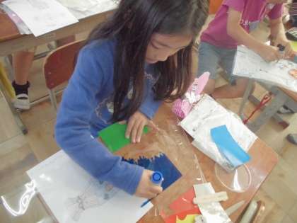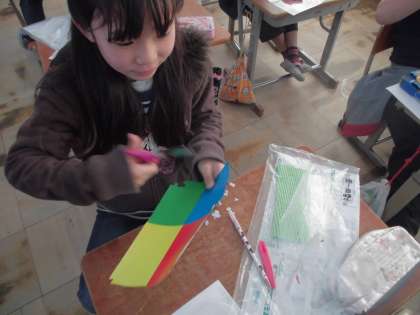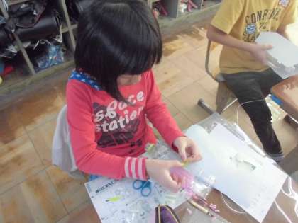 空きペットボトルを使って,光るオブジェを作りました。光を当てるとどのように作品が映し出されるのか楽しみです。