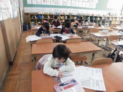 今日は,12月の土曜学習です。1年生も土曜学習の学習の進め方にもずいぶん慣れてきたようです。たくさんのプリントの問題をスラスラと解いて,先生に見てもらっていました。
