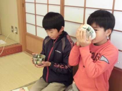 今日は,茶道体験教室がありました。30名以上の子どもたちが参加しました。部屋への入り方,お菓子やお茶のいただき方などの作法を教えていただきました。