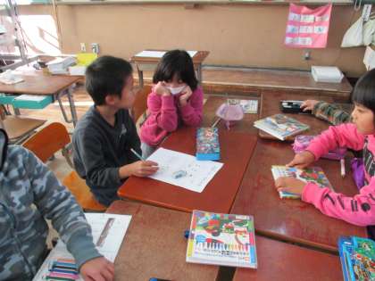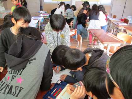 町のお店や施設に行って,インタビューをさせてもらいます。そのために,お店ごとのグループに分かれて,お店の人に手紙を書いたり,質問を考えたり,インタビューの練習をしたりしました。