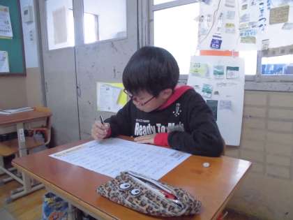 漢字50問テストに取り組んでいます。練習の成果を出すことはできたかな?