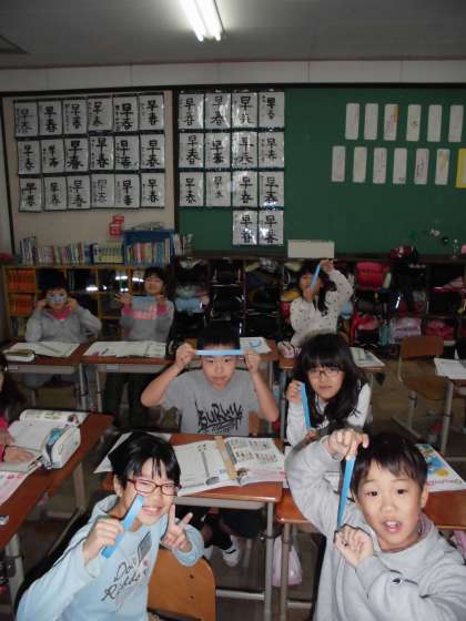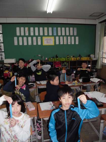 入学したころから4年生になったころまでどれくらい身長は伸びたのかな?紙テープの長さで実感しました。そのうち,1〜2年生の伸び,2〜3年生の伸び,3〜4年生ののびをそれぞれグラフにしました。身長の伸び方は,人それぞれです。体や心が大人に向かって成長していくことについて学習しています。