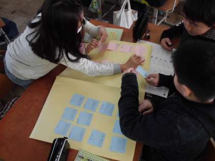 できたこと・がんばったこと,できなかったこと・むずかしかったことをグループごとに仲間わけしました。このグループでは,何がよくできていたのかな?できなかったことはどんなことがむずかしかったかな?