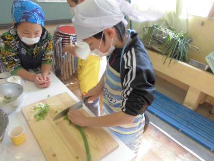 今日は3年生で育ててきた九条ねぎの収穫祭でした。村田さんにかまを使って収穫する方法を教えていただき,子どもたちが全て収穫してくれました。収穫した後は,みんなで協力してねぎ料理を作りました。できあがったねぎ料理をみんなでおいしくいただきました。月曜日に九条ねぎを持ち帰りますので,楽しみにしていてください。
