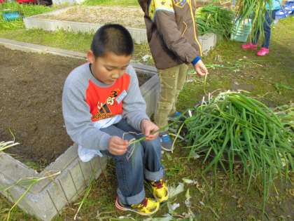 今日は3年生で育ててきた九条ねぎの収穫祭でした。村田さんにかまを使って収穫する方法を教えていただき,子どもたちが全て収穫してくれました。収穫した後は,みんなで協力してねぎ料理を作りました。できあがったねぎ料理をみんなでおいしくいただきました。月曜日に九条ねぎを持ち帰りますので,楽しみにしていてください。
