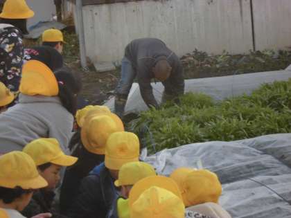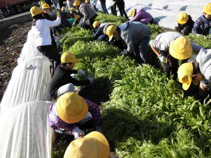 待ちに待った収穫の日です!!昨日の雨で足元が悪く,ズボンや靴がどろどろになってしまいました。でもみんな夢中で壬生菜と水菜の収穫をしていました。