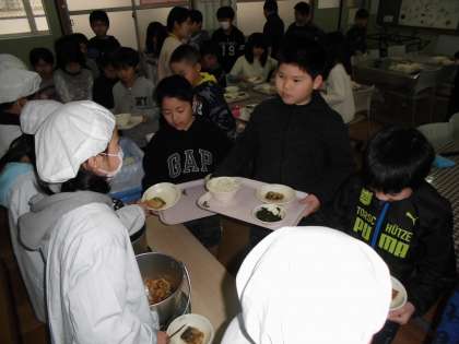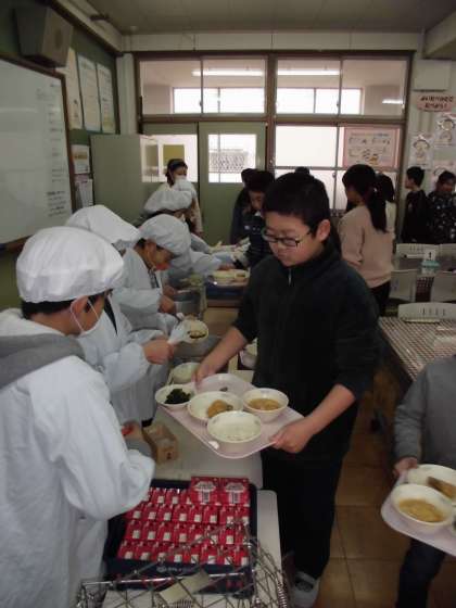 今日の給食は,ランチルームでいただきました。テキパキと準備ができました。