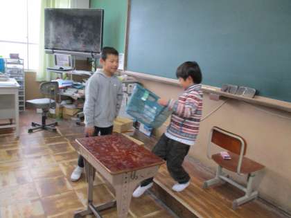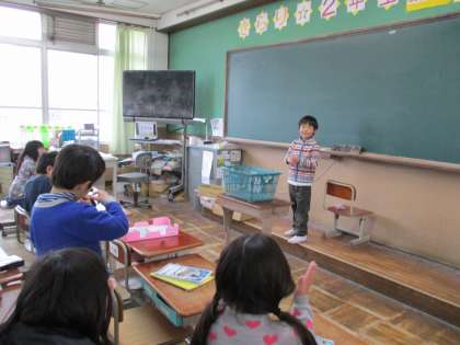 マジック係の子がマジックを披露してくれました。友だちがひいたトランプを見事にあてて,「おおー!」となりました。その後,たねあかしもしてくれました。