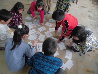 国語の学習で音訓の漢字をつかったかるたを作りました。作ったかるたでかるた大会をしました。