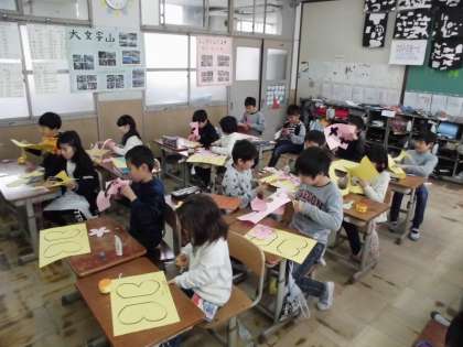 卒業式と入学式で壁面に貼る飾りを作りました。子どもたちは,気持ちを込めて一生懸命に作っていました。