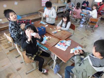 紙ねんどで好きな動物や食べ物などを形づくりました。