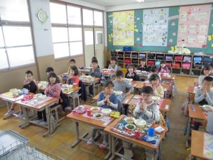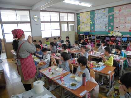 初めての給食。苦手な牛乳が飲めたよ!!という声も聞くことができました。