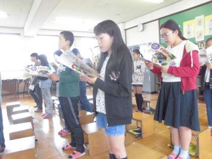 音楽の学習では,翼をくださいを歌っています。二部合唱で美しい声で歌うことができましたね。