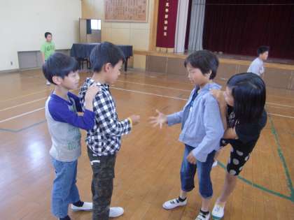 4くみの児童の2人はレクリエーション係なので、学年の前に立って見本を見せてくれました。