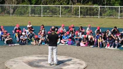 いよいよみさきの家ともお別れです。みんなの旗もおろし,所員さんに感謝の言葉を述べました。