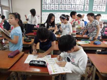 5年生から始まった外国語活動。外国語活動では,英語の歌を歌ったり,ゲームをしたりしてコミュニケーション活動を行います。