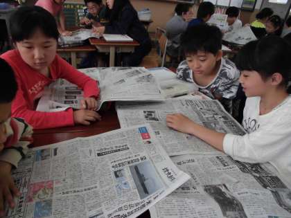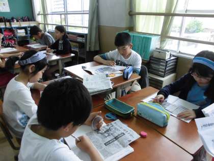 新聞記事の工夫をみつけたあとは,自分の気になる記事を見つけて意見や感想を書きました。
