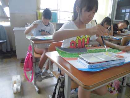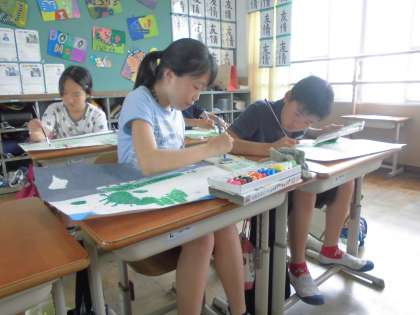 出来上がった絵は,土曜参観に掲示します。