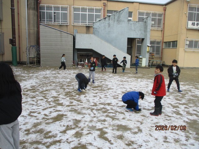 時間を少し取り、みんなで雪だるまを作ったり、雪合戦をしたりと雪遊びをしました。
