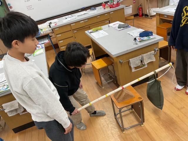 力点の位置や作用点の位置によって、はたらきの大きさが大きく変わることに驚く子どもたちでした。