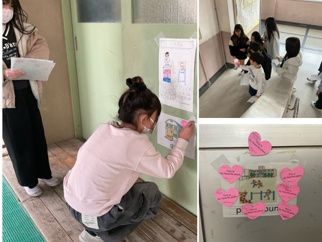 校内のお気に入りの場所について、英語を使って道案内しました。
