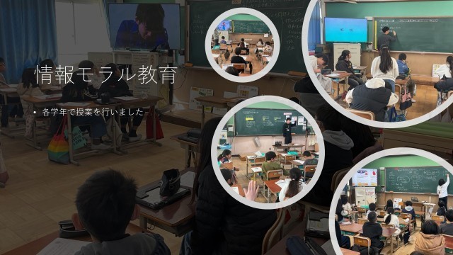 SNS上における暴力行為等の動画の投稿・拡散を受けた緊急の対応で、全学年で情報モラルについての授業を実施しました。1,2年生は「情報の大切さを知ろう」、3年生は「実際に起きていることでネットの使い方を考えよう」、4年生は「写真や動画が流出する怖さを知ろう」、5年生は「軽はずみなSNSへの投稿について」、6年生は「SNSへの書き込みへの影響」というテーマでした。どの学年もみんな真剣な顔で学習に向かっていました。
