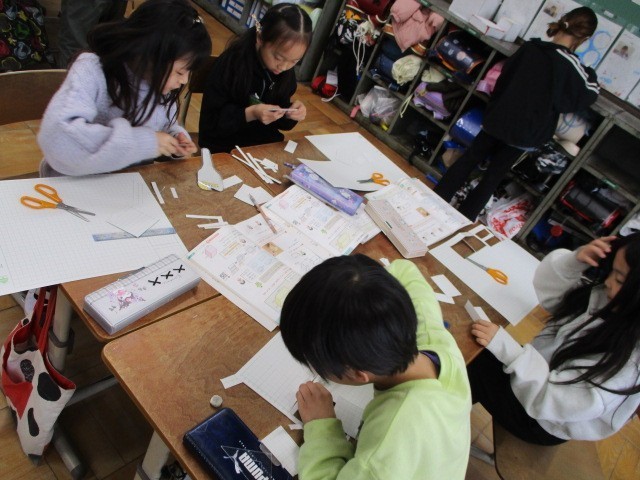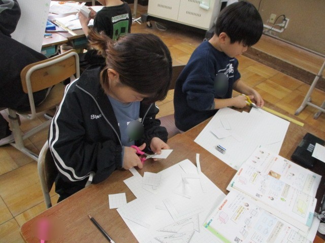 方眼紙を使って、はこの形を作っていきました。