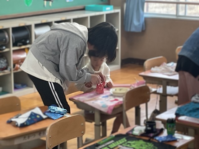 1年生の給食時間の片付けなどに、6年生がお手伝いに行っています。