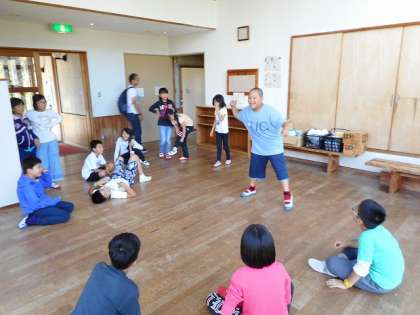 朝のつどい後の朝食までのちょっとした時間,6棟の子どもたちがダンスをして楽しんでいました。