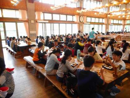 少し雨がちらついているため,昼食のお弁当は食堂で食べました。