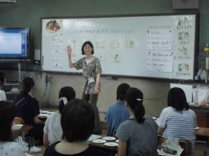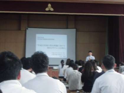 夏休み,教職員も授業力アップのために頑張って学んでいます。今日は,南区の教職員が一堂に会し,外国語の夏季研修を行いました。外国語の教科化に向けての講演を聴いたり,先生たちが子ども役をして実際に授業を受ける模擬授業を行ったりしました。