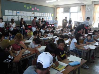 3拍子の拍の流れの乗って,楽しく演奏しました。また,自分の作った詩を,おうちの方にもみてもらいました。