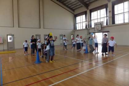今日は,日曜参観がありました。ミニスポーツ大会では,保護者の方も一緒に参加して頂き「デカスカリレー」と「ボールおくりゲーム」をしました。子どもたちは,お家の方も一緒に身体を動かすことができてとても良い表情をしていました。