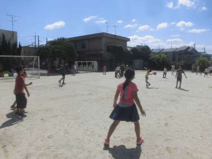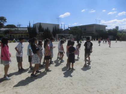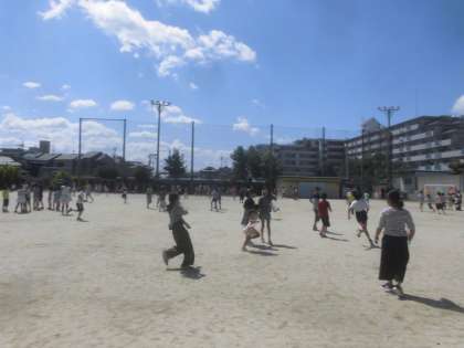 秋晴れの運動場でも,たてわりグループで,リレーやドッジボール,鬼ごっこなどをして楽しむ子どもたちの姿が見られました。「6年生は,手加減してくれたかな?」短い時間でしたが,汗だくになって,笑顔いっぱいの子どもたちでした。6年生の皆さん,ありがとうございました。これからも,たてわりグループのリーダーとして,よろしくお願いしますね。