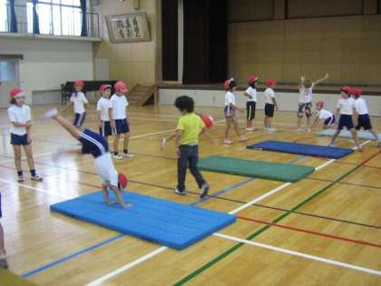 体育「マット運動」で,2年生は