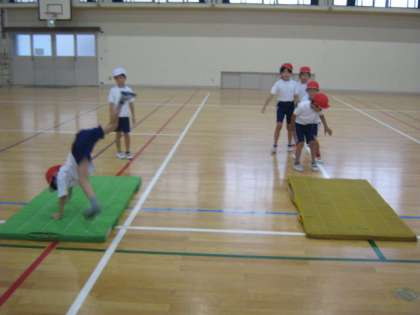 今はたくさんの子が側転の練習に励んでいます。