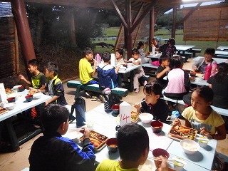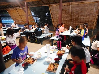 夕食は東屋でお弁当です。