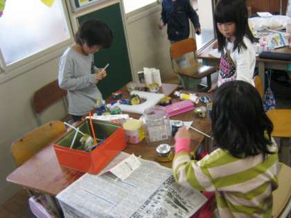 色を塗ったり,飾りをつけたりして