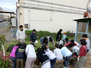 昨年度,花育活動でお世話になった京都府花き振興ネットワークの方に来ていただき,ボタンの木を植えました。
