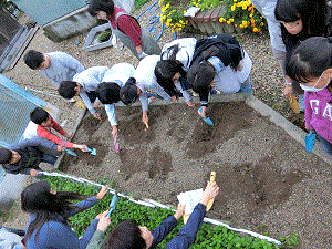 栽培委員会の子どもたちが放課後の時間を利用して6種類のボタンを植えました。