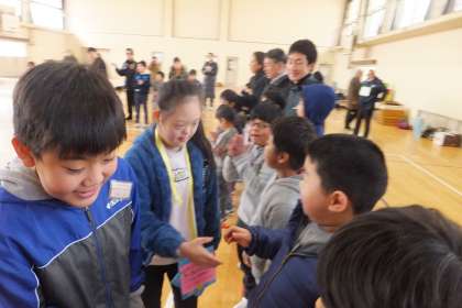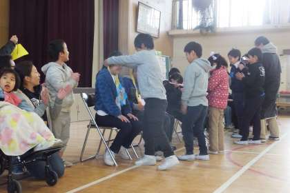 みなみお楽しみ会の最後には,卒業生にメダルのプレゼントをしました。卒業生はメダルをもらうと嬉しそうに見つめていました。他校の友だちとも交流し,楽しい時間を過ごすことができました。残りの学校生活もみんなと協力し,充実した日々を送りたいと思います。