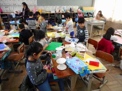 コロコロと転がったり,ゆらゆらとゆれるものをつくり,今日の図工の時間は,その特徴を生かした飾りつけをしました。