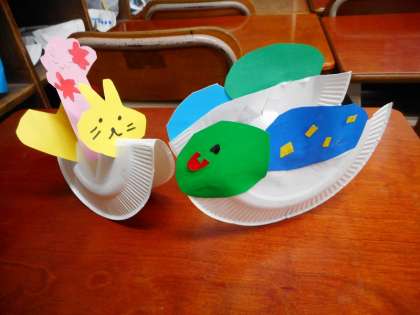ゆらゆらゆれる様子をカメに見立てるなど,たくさんの発想で面白い作品ができました。