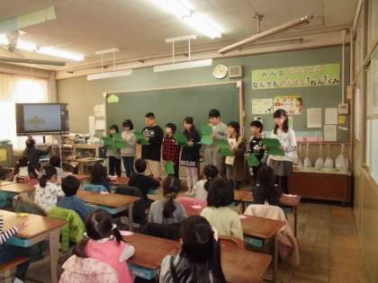 昨日,平成30年度新1年生の皆さんを対象とした,「半日入学」が行われました。最初は,ドキドキ緊張気味な新1年生でしたが,お返事をしたり,絵を描いたりして,少しずつ慣れてきたようでした。その後登場したのは,ドキドキの5年生。4月からの最高学年として,大藪小学校のことをクイズで伝えたり,読聞かせをしたり,音楽を発表したりして精一杯のおもてなしでした。4月から学校に通う元気な新1年生の姿と5年生の更なる活躍が楽しみになる半日入学でした。