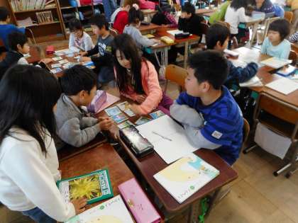グループで話し合いながら,話の流れに沿って並べ,内容をとらえることができました。