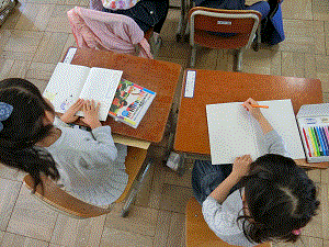 図工の学習では,クーピーやクレパスをていねいにぬったり,自由帳に絵を描いたりしながら,楽しく学習していました。
