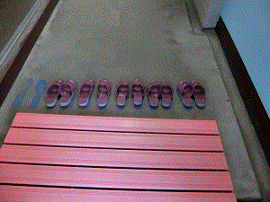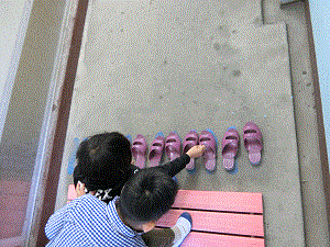 「スリッパを揃えると,次に使う人が使いやすいね」と先生から話を聞くと,朝揃っていなかったトイレのスリッパがそれ以降,きれいに揃えられていました。スリッパだけでなく,自分たちの靴も決められた場所にきっちりと置いていました。