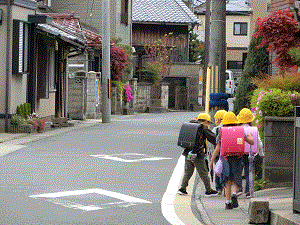 入学してから1週間が経ち,登下校にも少しずつ慣れてきた子どもたち。道路を渡る時には,友だちと車や自転車が来ていないかしっかりと左右の確認をしながら,渡っています。