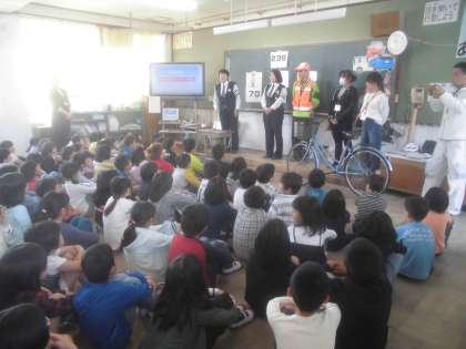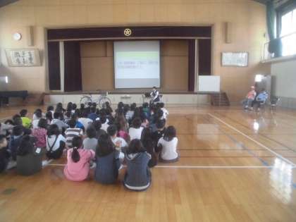 本日,2・3・5・6年生の交通安全教室が行われました。運動場の状態が悪かったため,実際に自転車に乗っての学習は実施できませんでしたが,南警察署の方からの話を聞いたり,DVDを見たりして学習しました。地域やPTAの方々,ボランティアの保護者の方々にも,ご協力いただきました。ありがとうございました。明日の自転車免許講習でも,多くの方々にお世話になる予定です。自転者で怪我をしないように,させないように,今日学んだことを忘れないでいてほしいと思います。