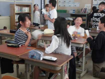 ペアを見つけて,友達と楽しくやりとりをしていました。
